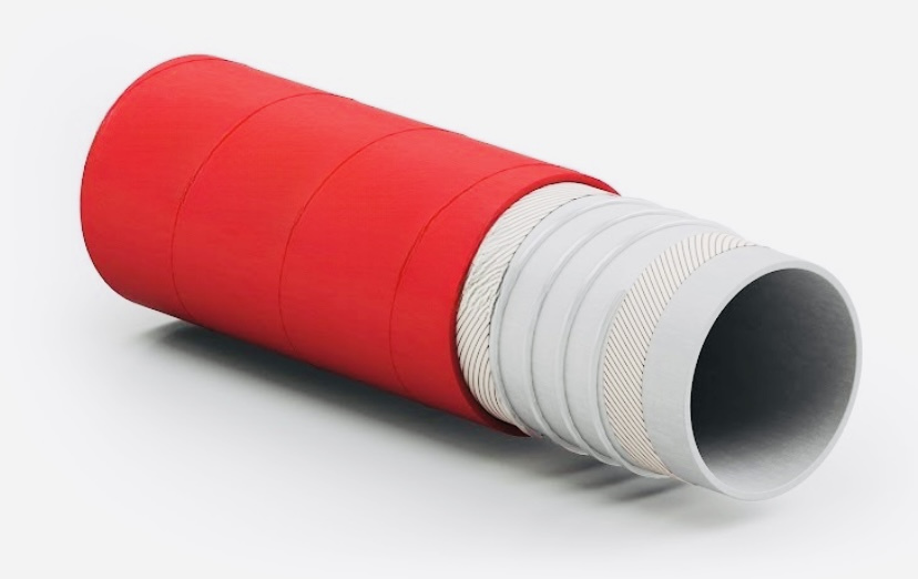 Crush-resistant rubber suction and delivery hose designed for the transfer of milk, dairy by-products, wine, and non-fatty food products. Manufactured in accordance with GMP standards (Regulation (EC) No. 2023/2006).